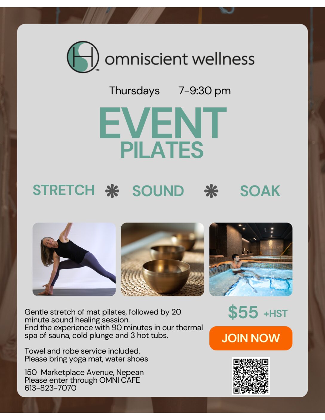 Special Event Join us Thursdays for our evening of care: Start with gentle stretch mat pilates for 35 minutes, Followed by 20 minute sound healing session. End the experience with …